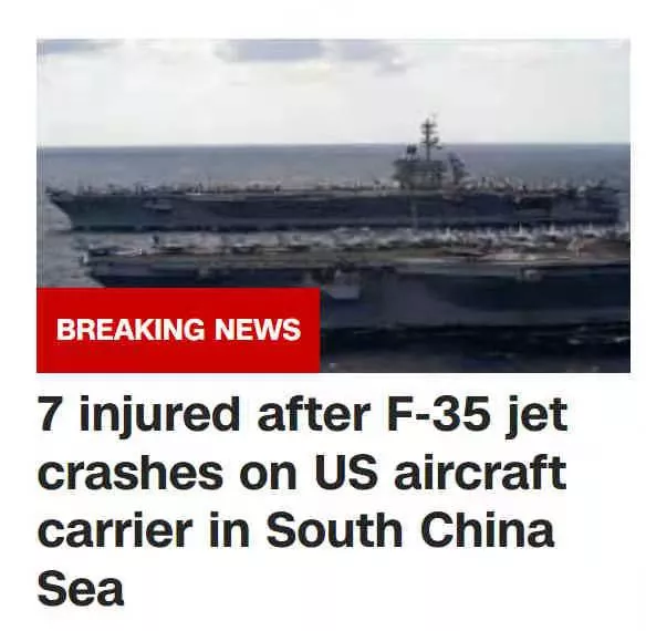 1月24,美國海軍一架F-35C艦載機24日在“卡爾·文森”號航空母艦甲板上降落時發生“降落事故”,造成7名航母船員受傷……
