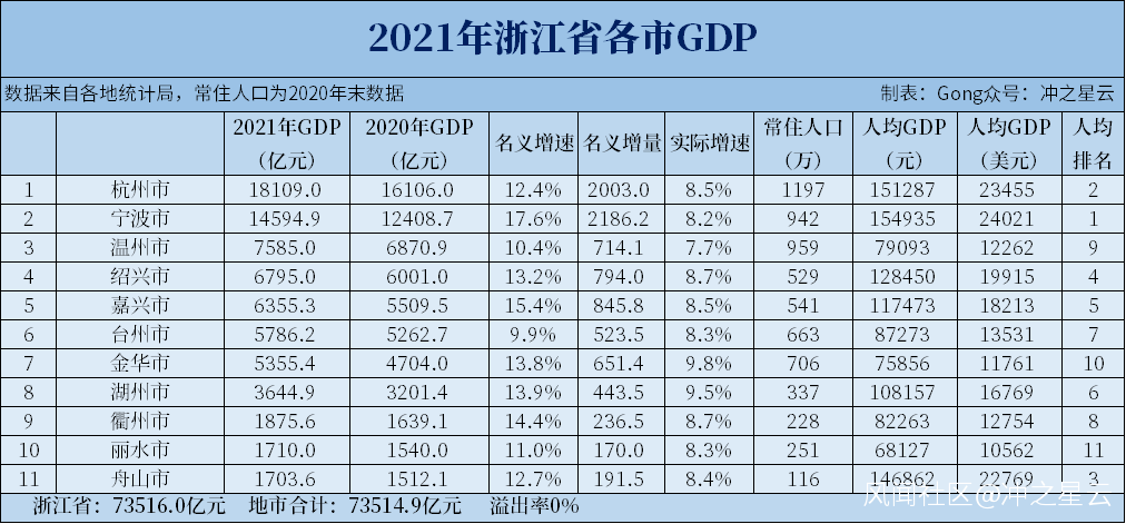 2021年浙江各市GDP,寧波人均超杭州_風聞