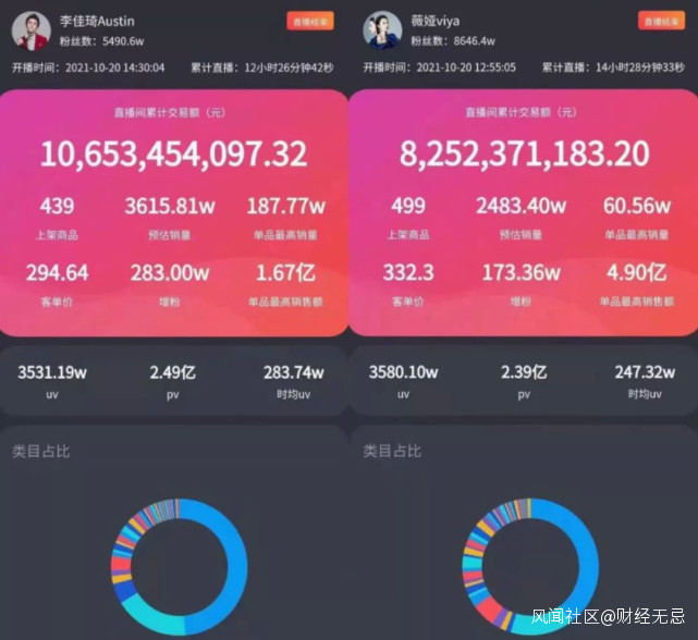 薇婭“存活”階段的帶貨實力,備受公認:2020年,全年銷售額310.9億元;2021年天貓雙十一預售首日,薇婭直播間銷售額為82.52億元。