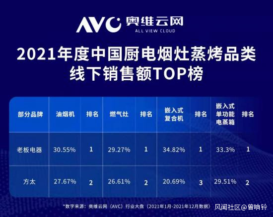從線下銷售額與市佔率來看,老闆電器的以各品類“第一”的成績全面領先方太。