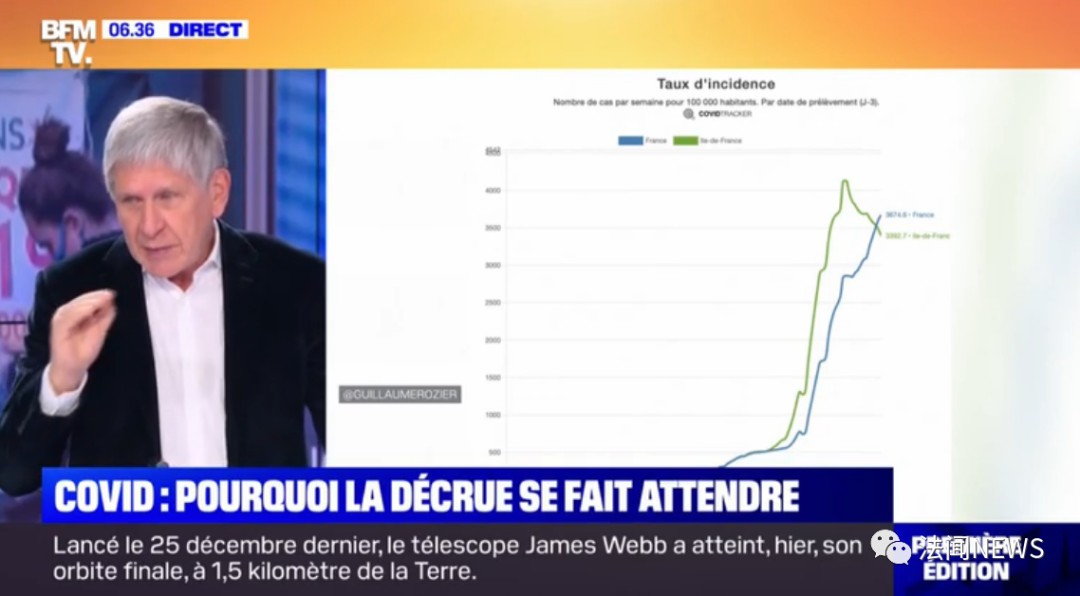 總理Jean Castex曾在上週表示,疫情在第一批出現Omicron變種的地區開始放緩。根據疫情指數曲線圖,這一趨勢在法蘭西島地區已經開始出現,發病率開始下降,但在全國其他地區仍有待觀察。