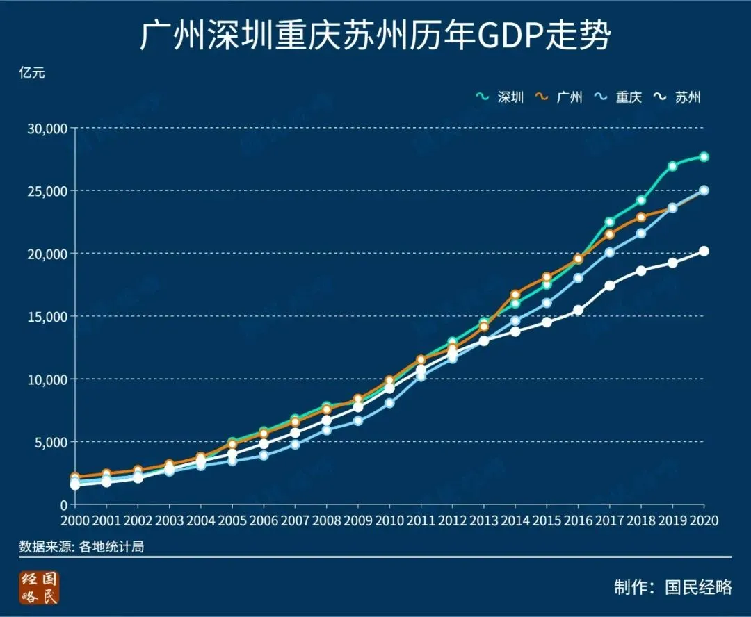 前幾年,廣州經濟遭遇了增長之困,GDP不僅被深圳趕超,甚至對重慶的領先優勢縮小到僅僅幾十億元,一時之間,廣州跌出一線城市的説法甚囂塵上。