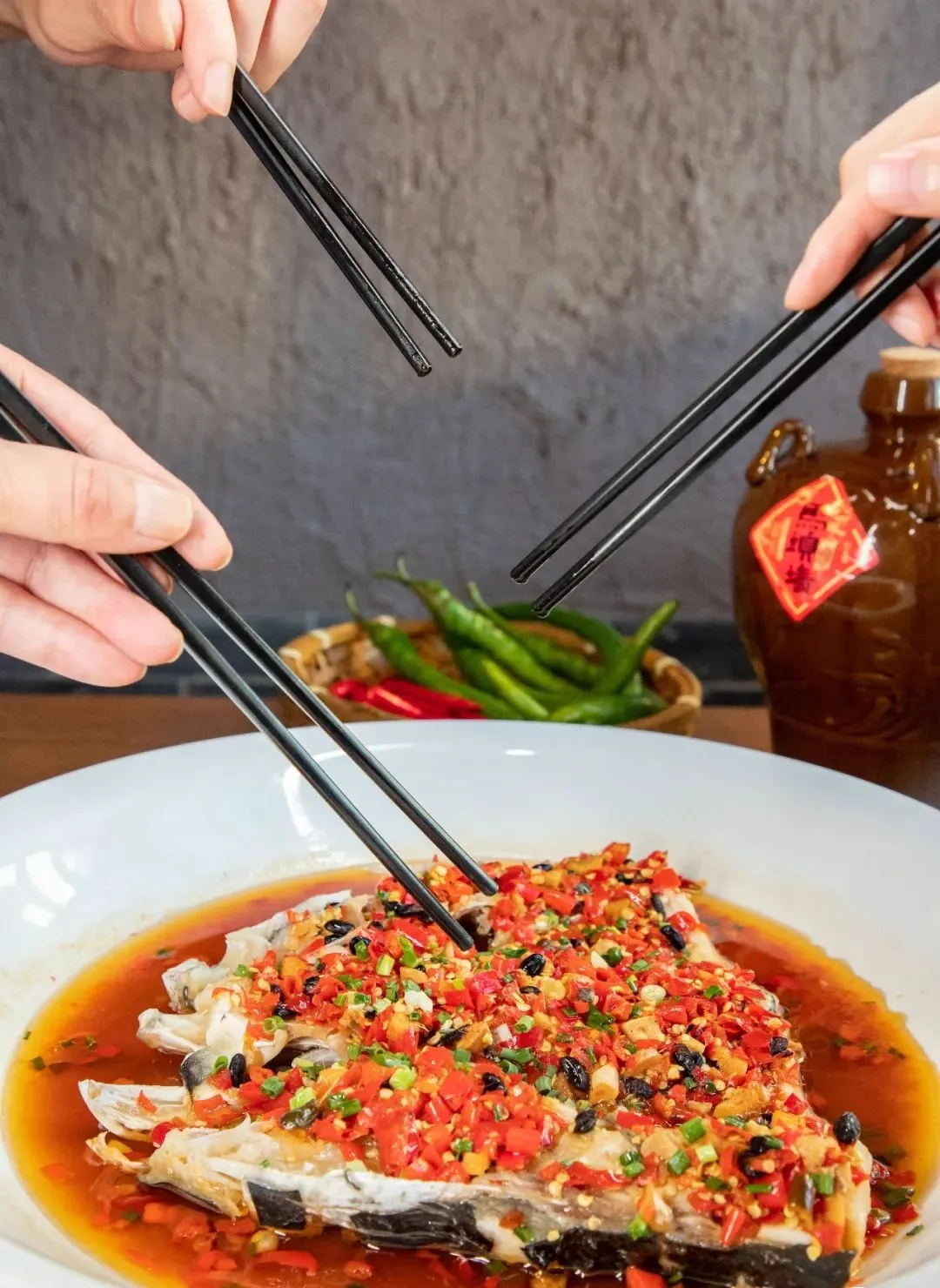 剁椒魚頭,被譽為湘菜之冠。碩大的花頭只是它的載體,糟香、蒜香、椒香為一體的剁辣椒,才是它的靈魂所在。