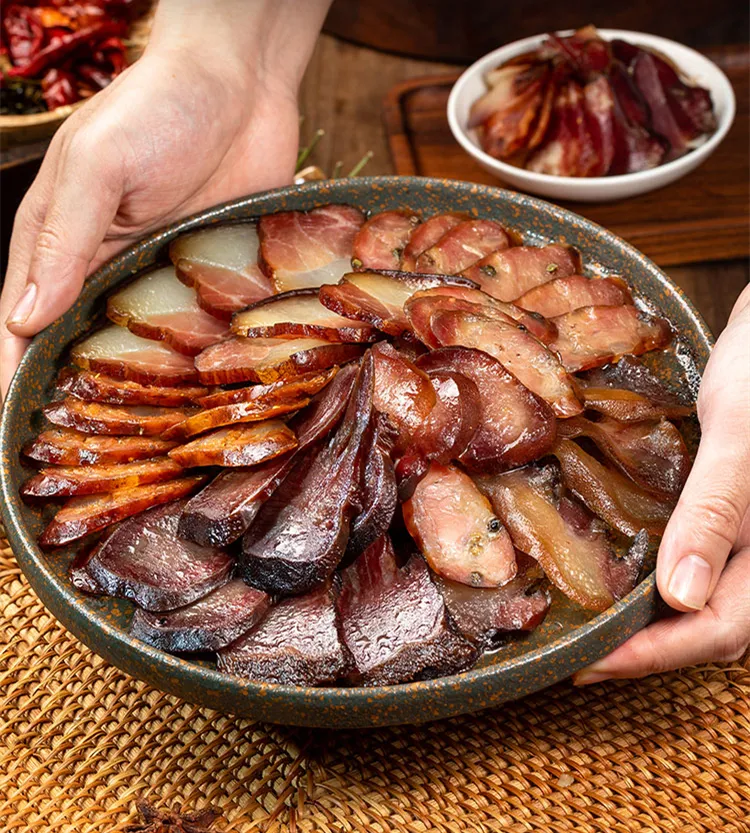麻辣是川味的精華,川人也很好地把這份精華嫁接到臘味之中。與廣式臘味的甜潤不同,川式臘味以鮮辣微麻著稱,辣椒和花椒,賦予它們更深邃的紅色和更厚重的滋味。