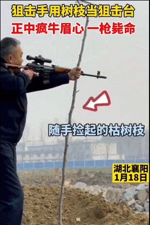 其實這很容易理解,中國很多農村地區在使用耕牛作為畜力,在偶然受到刺激後,很容易發狂成為“瘋牛”,威脅人民生命財產安全,只能擊斃處理。近期湖北襄陽警方就成功處理了一起瘋牛事件,民警狙擊手藉助樹枝當狙擊台,一槍擊正中瘋牛眉心將其擊斃:
