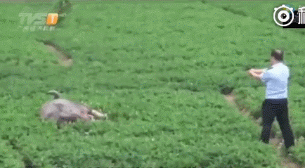 四川宜賓市長寧縣,一家養牛場的一頭水牛突然掙脱繮繩四處亂竄,撞傷5人後跑出養牛場,警方決定擊斃瘋牛,但很尷尬的一幕發生了:先用79衝鋒槍連開六槍,水牛就跟沒事牛似得:“這癢癢撓的不錯!再來再來!”。