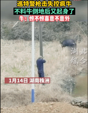 但是民警開了兩槍,牛卻跳起來了:誰打老子?一看眼前有個人,馬上就去追,民警只能趕緊跑。