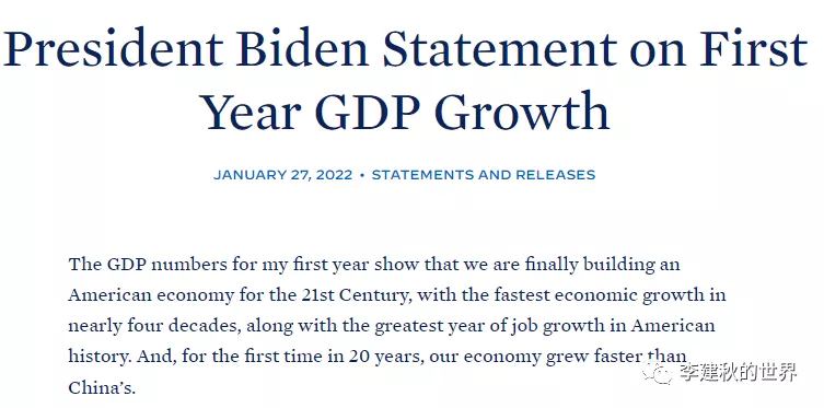 而且即便是“季度”來説,2020年第一季度,中國封城,那個季度美國GDP增速肯定比中國高,説明起碼不是“首次”。