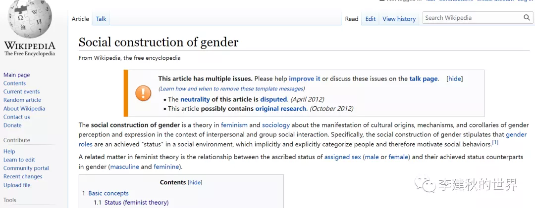 關於這個説法,其實算是老理論了,在維基百科上,甚至有“性別的社會建構”這個詞條: