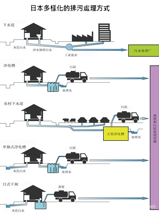 日本多樣化的排污處理方式示意圖