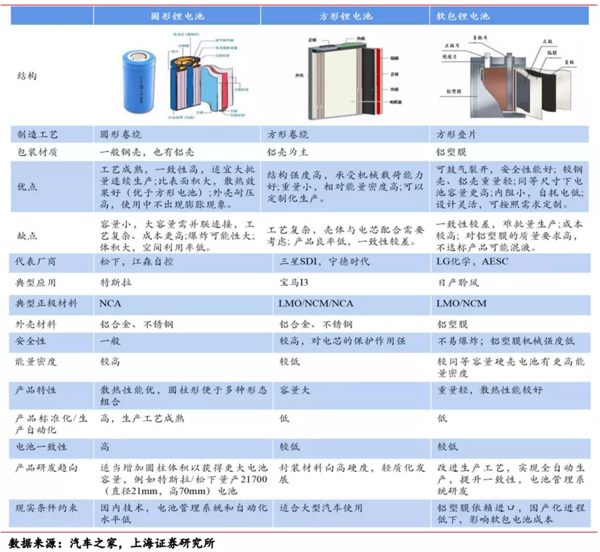 從特斯拉劃時代推出,其採用的是18650的圓柱電池,圓柱電池逐步走向舞台中心。