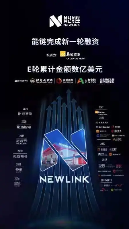 “能鏈”宣佈獲得華潤資本投資,加上此前招商局資本、中金資本、山東高速、國際綠色基金山東綠色發展股權投資基金的投資,能鏈已累計完成數億美元E輪融資。據介紹,能鏈是一家能源產業物聯網公司,擁有團油、快電、能鏈雲、能程科技、能鏈綜合能源港、能鏈便利六大業務,已獲得中檢集團、SGS集團的碳減排核查報告。