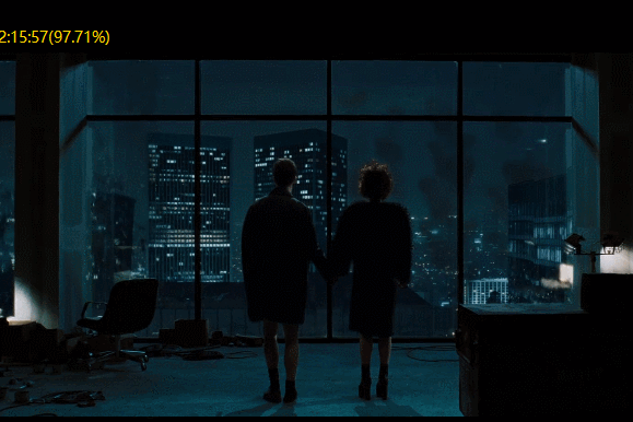 然後牽起女主的手,站在黑夜裏,看着那些極具象徵意義的大廈傾倒在一片火海中: