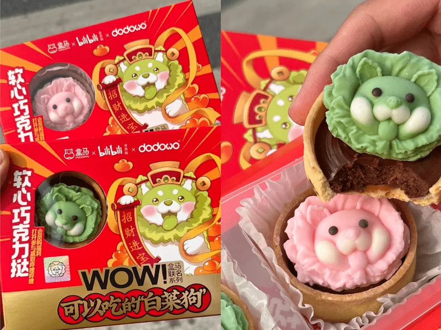 12、盒馬聯名菜狗IP推出軟心巧克力撻,上新首日部分門店即宣告售罄
