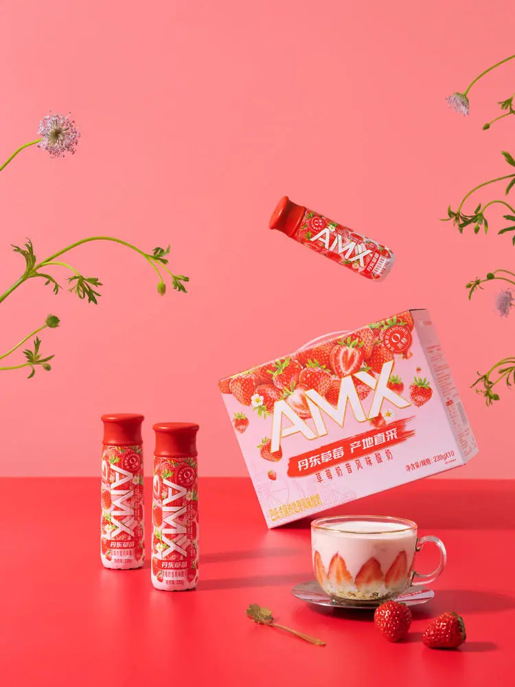 4、安慕希上新AMX丹東草莓奶昔風味酸奶,12道工序優質果醬打破0蔗糖口味桎梏