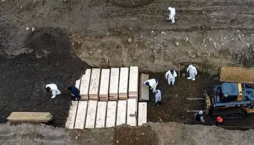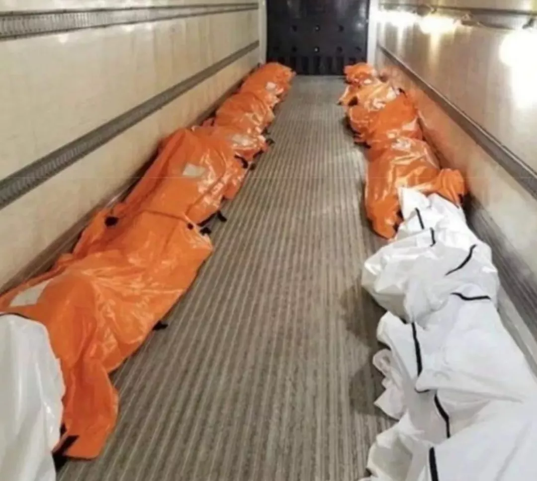 結果大家都知道,180個戰地醫院沒有,35艘醫療船也沒有,屍體冷藏車倒是越來越多,一車一車的屍體往外拉,殯儀館一地無主的平板,無人島亂葬崗倒垃圾一樣填埋着薄皮棺材……