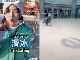 有個女生靠着在滑冰的間隙來一段中文詞彙教學,在TikTok的播放量達到120萬。