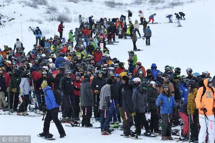 北京某雪場在試營業期間,排隊上山的人就站出了二里地。