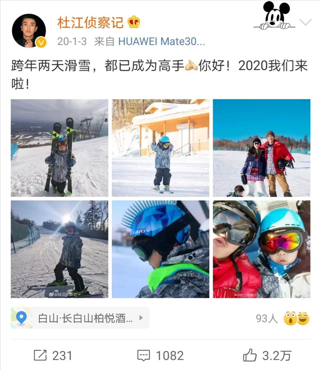 杜江、霍思燕一家把滑雪作為每年的跨年項目。