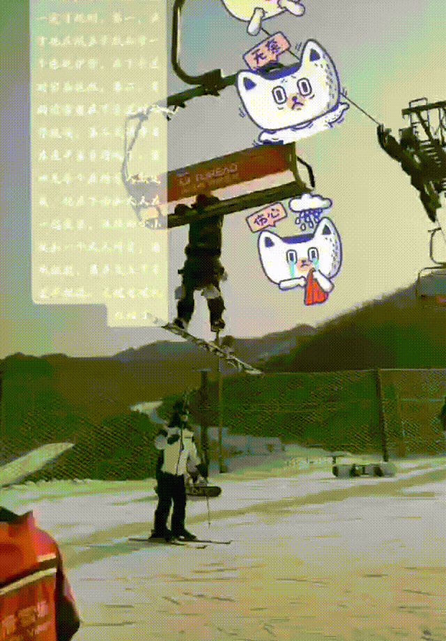 很多腳被滑雪板束縛的人,還沒適應露天纜車的恐懼,就被纜車連滾帶爬的推了下來。