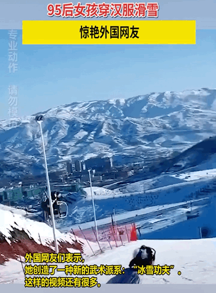 95後女孩沈衍穿仙鶴刺繡漢服滑雪的視頻,還火到了國外,稱她創造了一種新的武術派系:冰雪功夫。