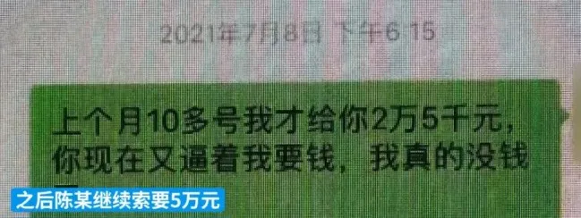 7月8日,陳某再次要求黃某給自己轉賬五萬塊,否則就去報警。