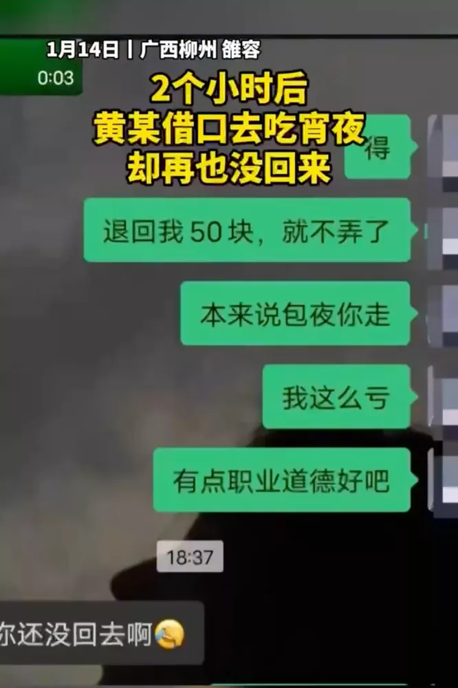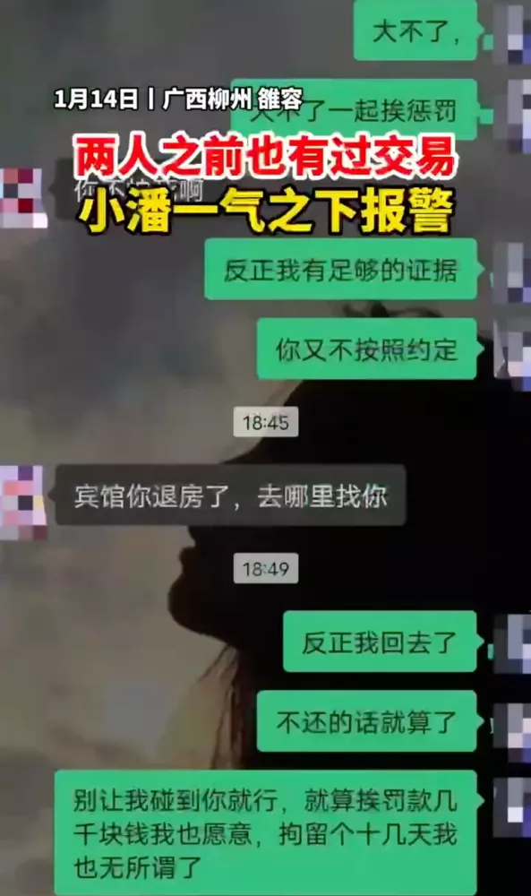 1月14日,廣西柳州,剛滿18歲的嫖客潘某通過網絡約47歲的失足婦女黃某包夜。