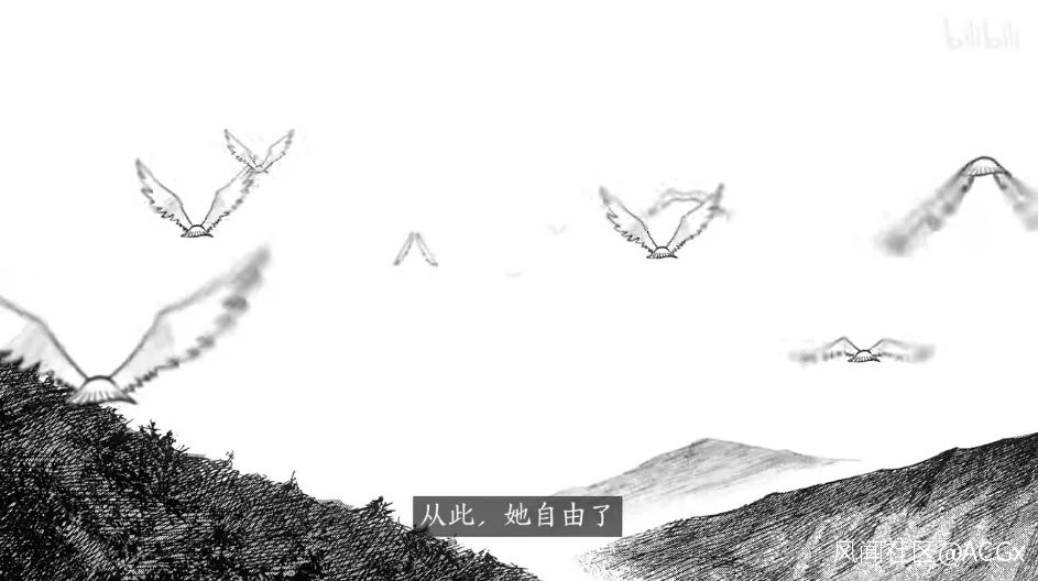 《丹翎傳》在分鏡上延續了虛實交錯的表現手法,例如篇中對宿命感的塑造,鳥的意象貫穿始終,用鳥兒預言和批示了故事的走向。故事第一個分鏡,鳥兒停在夷陵之戰後,沾滿鮮血的 “漢”字大旗上,代表的就是樓船籠中的孫尚香,成為了吳國求和的道具。而篇末鳥兒振翅飛翔,也預表着孫尚香掙脱命運枷鎖,開始了屬於她自己的人生。