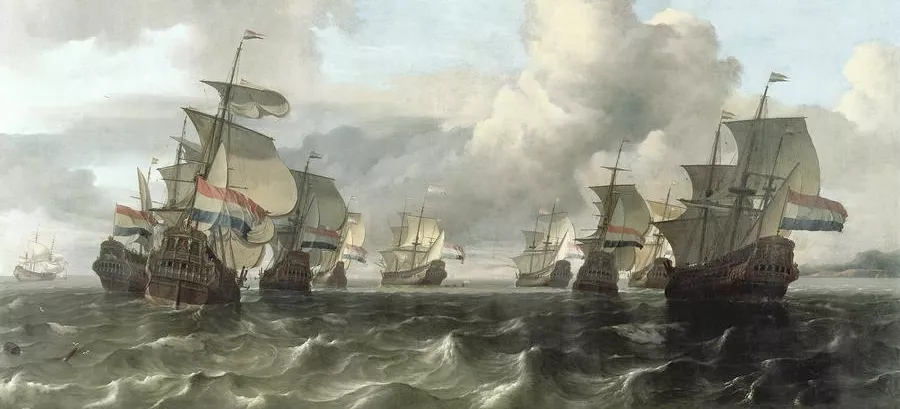 1652年,荷蘭獨立僅僅四年,英國和荷蘭就為爭奪海上霸權而開戰。1652-1654,1665-1667,1672-1674年,英國和荷蘭之間打了三次戰爭。與一般人的印象不同,三次英荷戰爭中,荷蘭並沒有戰敗。第二次英荷戰爭,荷蘭艦隊衝入泰晤士河,炮轟倫敦。第三次英荷戰爭,在英國和法國兩大強國的夾擊之下,荷蘭在海上擊敗英國,簽署了對自己有利的和約。