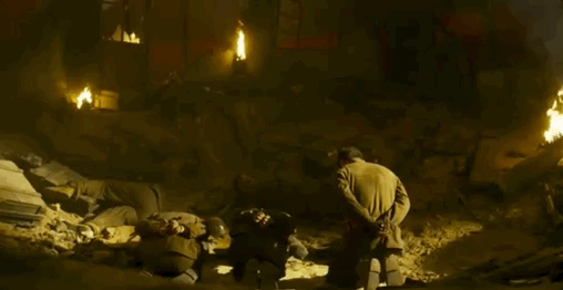 演一個被開槍處決的羣演士兵,他身體先是因為中槍猛地一顫,遲遲不願倒下,接着側過身體,回、回眸一笑?