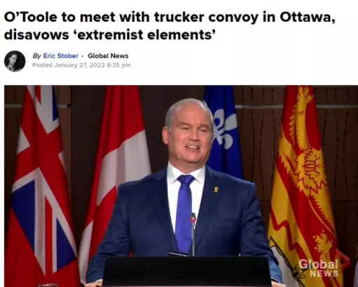 週五,保守黨黨領奧圖爾在推特上發佈了他和卡車司機會面的照片,表示支持司機發表意見的權利,呼籲特魯多和這些加拿大司機會面,並請這些司機在本週末安全抗議。