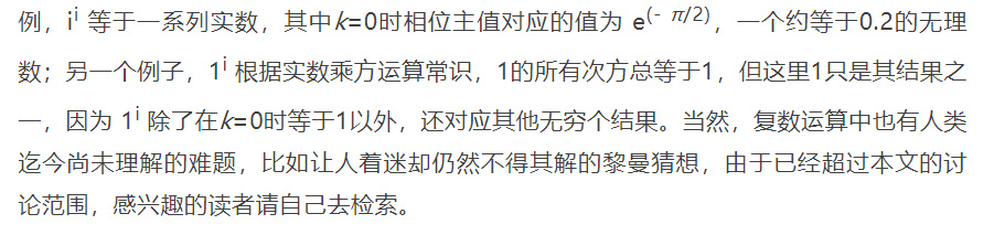 還有一則,在歐拉恆等式被引入之前,複數的計算通常需要高超的數學技巧,比如約翰·伯努利運用(x+i)(x-i)=1+x 2 的技巧找到了反正切與對數函數之間的內在聯繫,並運用於虛數因子分解積分,被萊布尼茨 (Leibniz) 評價為非凡智能的一個優美神奇。