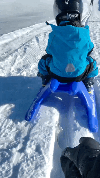 除了滑雪之外,Den寶每次上山最愛玩的其實是滑雪橇。找個大坡,呼呼滑下去再費勁兒拖上來,又好玩又刺激,鍛鍊效果還特別好,每次滑完都吃好多。