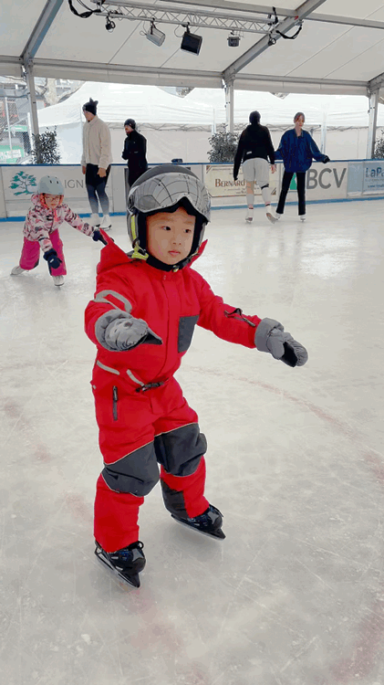 我家Den寶第一上冰的時候才兩歲多,都沒有他合適的冰鞋,只能穿那種綁在鞋子外面的冰刀。後來因為疫情的原因家附近的冰場前兩年都沒開,今年冬天他才又重新開始學滑冰。