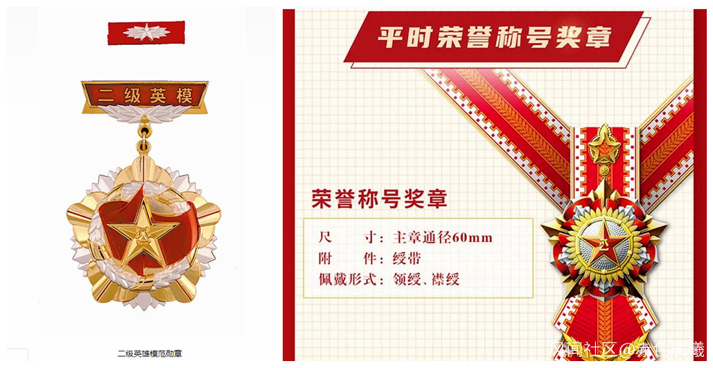 以祁發寶團長為例,他被授予“衞國戍邊英雄團長”榮譽稱號,如果按2011年的來發,大概率是二級英模。那這個跟榮譽稱號獎章就差別挺大的了。領授跟襟授天然就不是一個檔次的,表彰會一開,獎章往脖子上一掛,振奮人心!