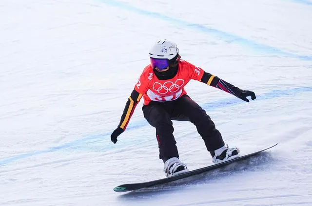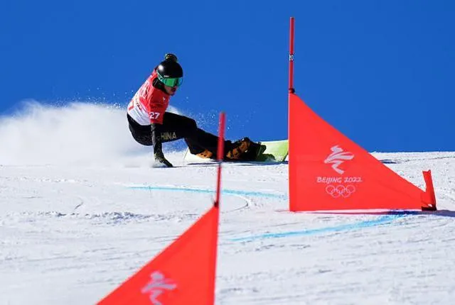 畢野成為冬奧歷史上首位參加單板滑雪男子平行大回轉比賽的中國選手。圖源:新華社