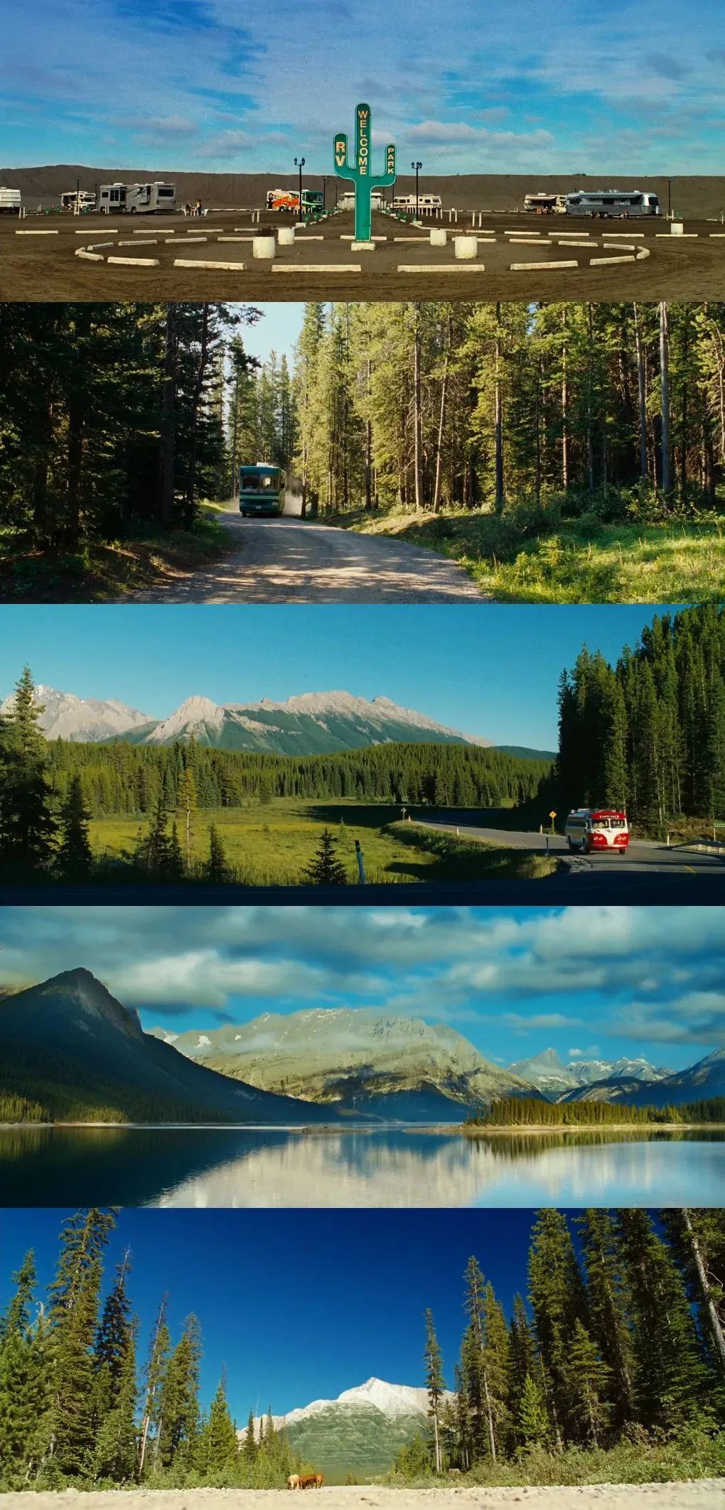 除了美式喜劇主題的設定,在這部影片中你能看到的公路風景實在美不勝收,從沙漠到雪山、湖泊、叢林,畫面純淨又明亮。