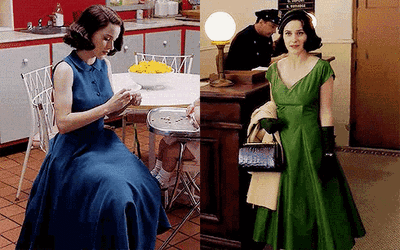 這部劇的看點不僅是麥瑟爾夫人的脱口秀表演,還有她完美還原了上世紀五十年代的穿搭,喜歡復古或時尚的觀眾們可以借鑑哦!
