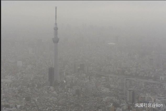 籠罩在霧霾下的東京塔。霧霾在日本叫光化學污染,當時的日本也會在嚴重時停止體育課。