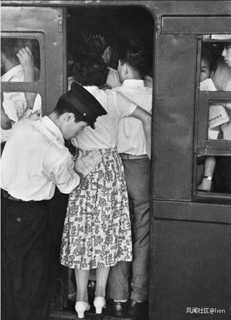 日本電車擁擠程度遠超中國,車站人員需要用力將乘客推進去。