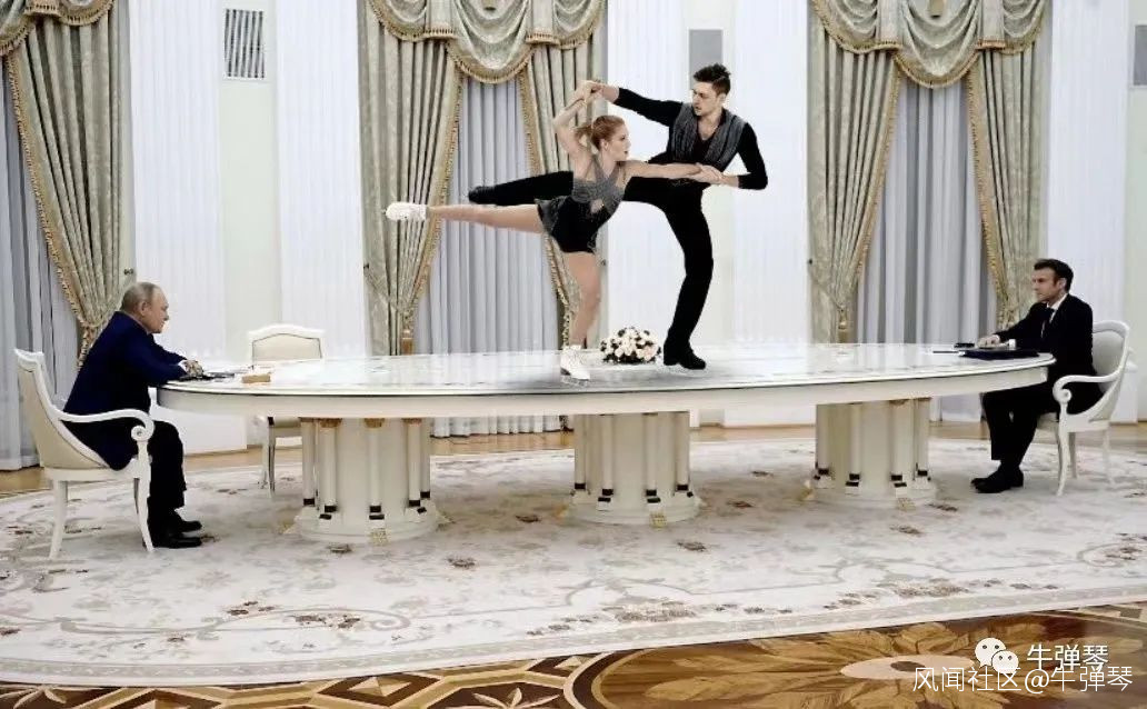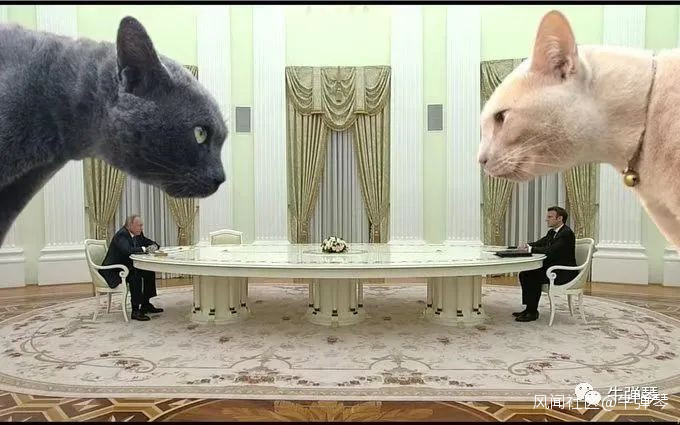 還記得前幾天普京從北京回國後,會見到訪的馬克龍,偌大的會議室,兩位領導人,中間是一張超長的白色會議桌。