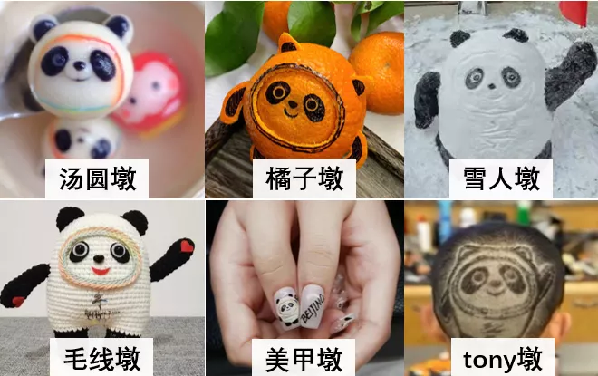 網上有很多能人異士,都根據自己的專長DIY了冰墩墩。比如美甲墩、託尼墩、湯圓墩、砂糖橘墩…三百六十行,行行出墩墩,總有一種墩法適合你