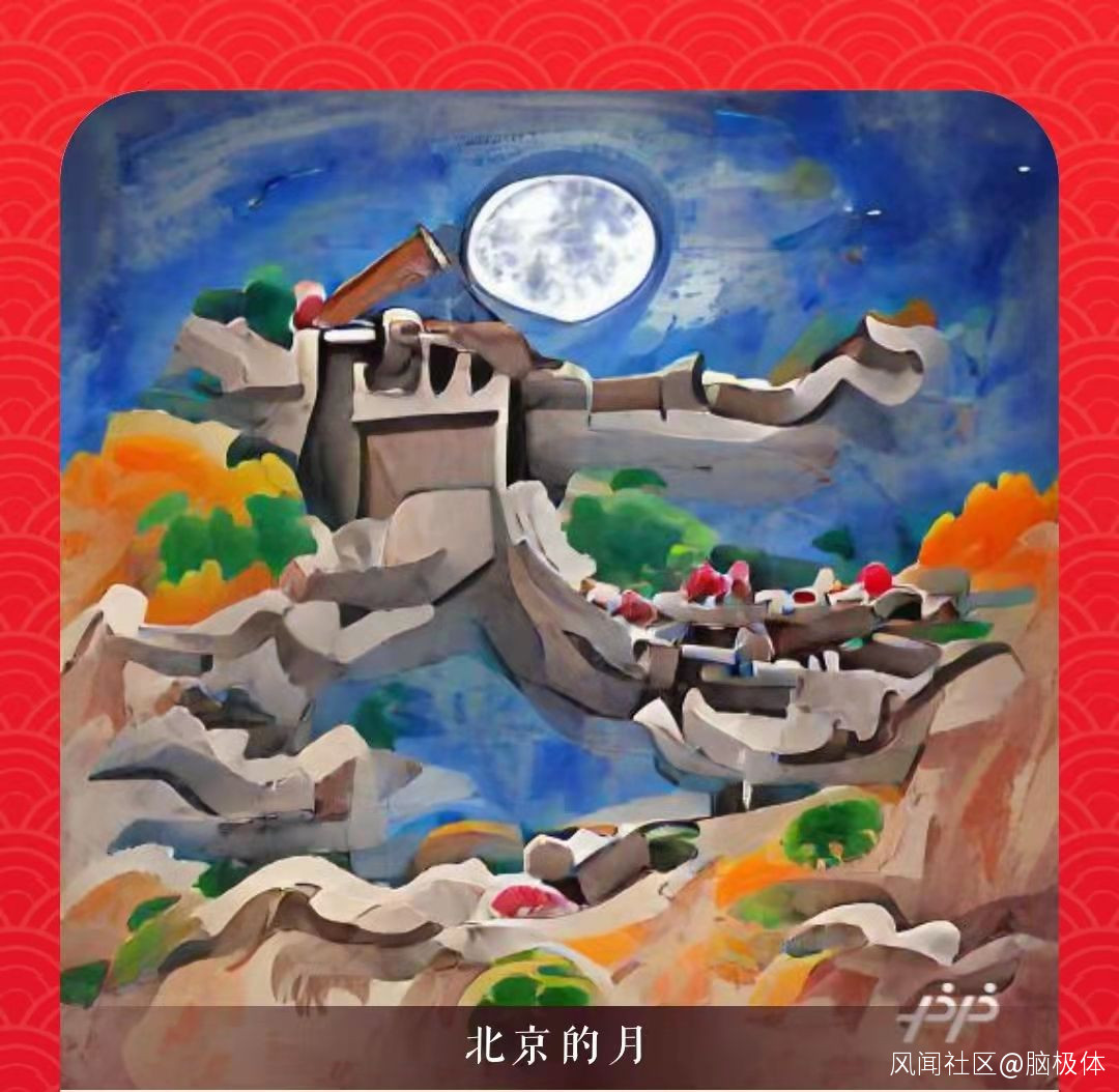 明月是中國人不變的鄉愁,是人類藝術史永恆的執念。在“天下共元宵”互動活動中,用户可以輸入一個地名,既可以是自己的家鄉,也可以是讓我們神往的異國他鄉,甚至是雪山,是火星。然後AI能夠快速理解這個地名,並進行聯想創意,隨後用藝術史上傑出畫家的筆法,創作出符合主題的藝術畫作,並且還能賦詩一首。