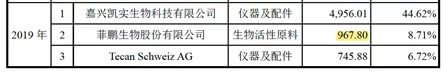 據科美診斷(688468.SH)2021年4月2日公示的招股書,菲鵬生物是其2019年的前五大物料供應商之一。科美診斷向菲鵬生物採購生物活性原料967.80萬元。