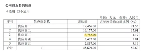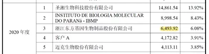 另外,菲鵬生物招股書還顯示,2020年公司對東方生物(688298.SH)的銷售收入為6493.92萬元,然而,東方生物2020年年報顯示,其前三大供應商的採購額分別為1.95億、1.62億、3762萬。