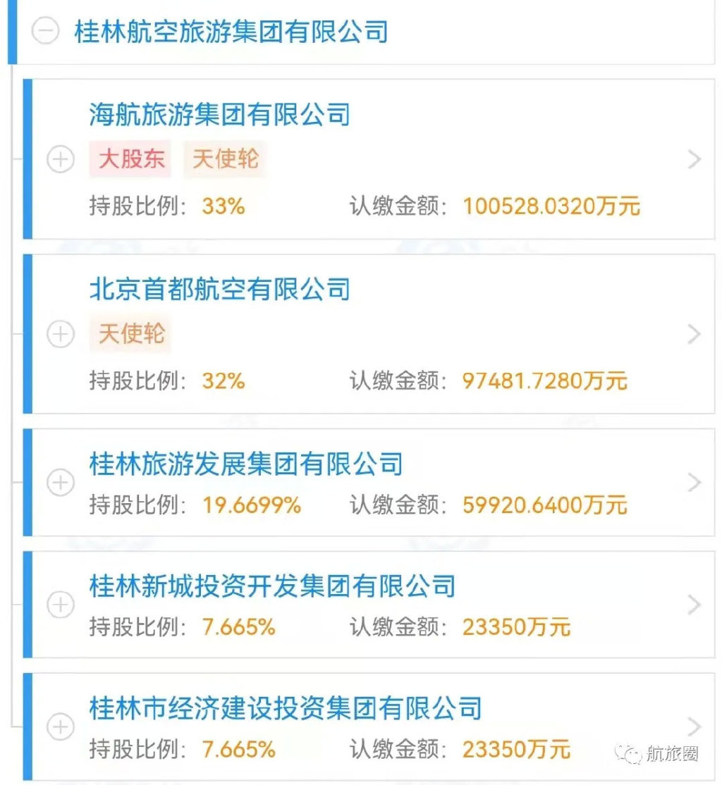 而海航與桂林合資的桂林航空旅遊集團則始終作為二股東,持股桂林航40%。