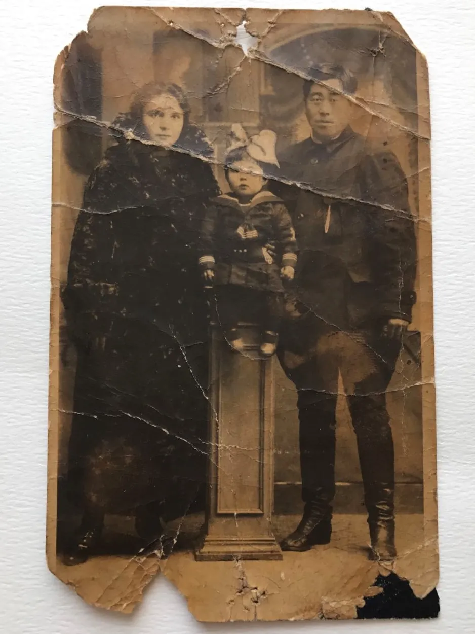 故事進展到此處時,命運之神一直眷顧着韓廣鄉。韓丹星手頭珍藏有一張外公一家3口於1926年拍攝的黑白全家福照片。韓廣鄉和美麗的妻子站立兩側,可愛的女兒坐在中間的一個高台之上。小女孩穿着帥氣的小水兵外套,淺色小皮鞋,頭上扎着大大的蝴蝶結。照片有些破損,但能看出,韓廣鄉意氣風發,多年辛苦勞作、戎馬生涯之後,他終於擁有了自己温馨的小家。
