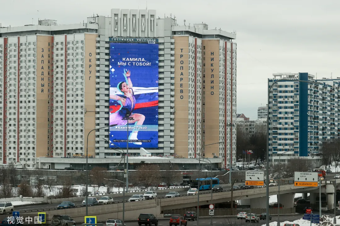 莫斯科一家酒店大樓掛出巨型橫幅聲援瓦利耶娃