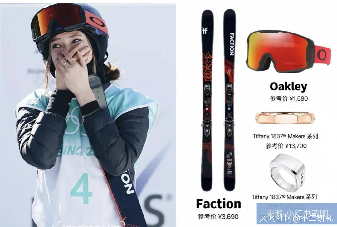 由於冰雪運動相較於球類等大眾運動更加昂貴,其用具也具備高端化特徵。其餘兩個以谷愛凌為代言人的專業滑雪品牌FACTION和OAKLEY則主打中高端路線。