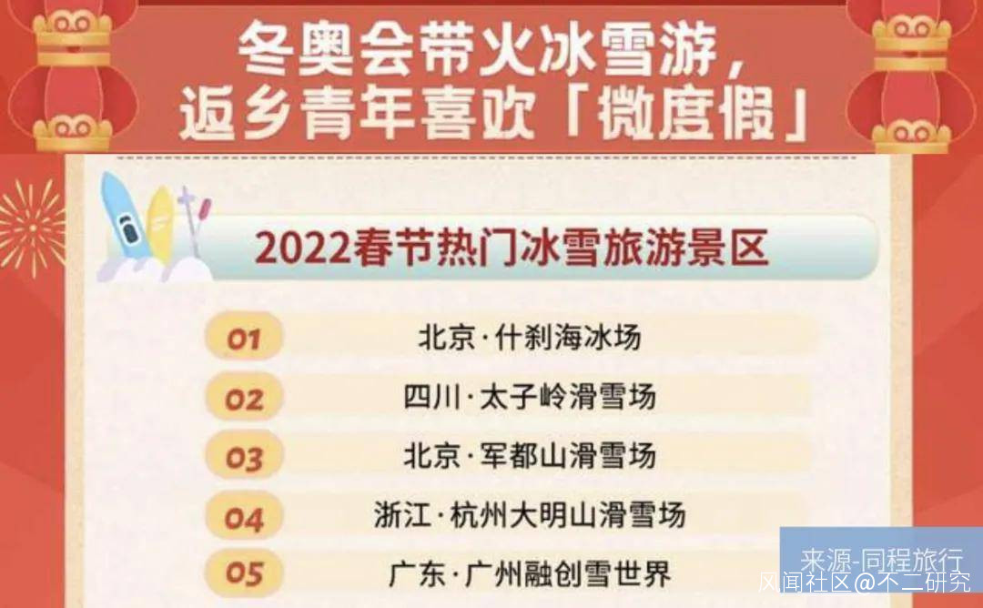 據同程旅行統計,北京什剎海冰場,四川的太子嶺滑雪場,北京軍都山滑雪場,浙江杭州大明山滑雪場、廣州融創雪世界成為春節期間全國最熱門的冰雪旅遊景區。